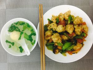做法1:西兰花炒虾球