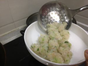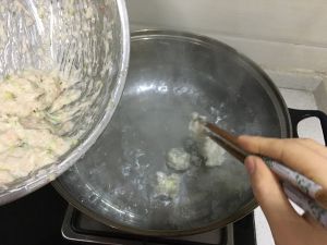 用筷子抓成小球,入沸水锅