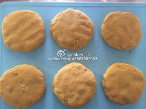 然后搓成小圆子按扁 油在烧热以后转成中小火 因为很容易烧焦 我用的是不粘锅所以不需要太多油