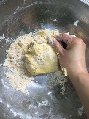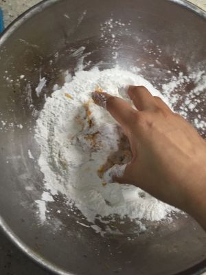 把南瓜和粉抓匀,有点烫爪,忍着。