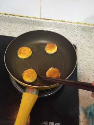 把南瓜面团放入模子里,下油锅小火煎熟。