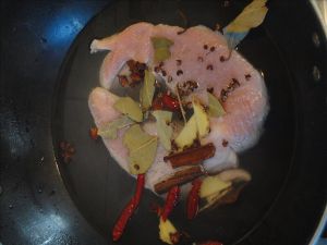 把后腿切成1.5厘米,把筋切除,放到高压锅里,里面加盐,冰糖,生抽一勺,黄酒一勺,生姜,加水莫过肉,烧开后转小火炖半小时,最好把肉烧烂