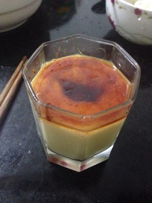 把布丁液倒入玻璃杯,在放到过上蒸15分钟左右。最后在放冷15分钟左右就好。还可以按照自己的喜好加焦糖(焦糖=水+白糖煮到焦黄色的时候)(图为三个布丁。200ml一个布丁)