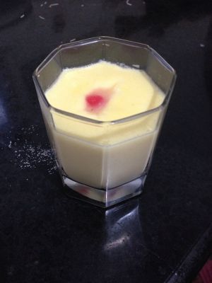 把加热好的牛奶放凉,再倒入鸡蛋,边到边搅拌,就成了布丁液(布丁液用密的网过滤几遍)再倒入玻璃杯(可加点缀)