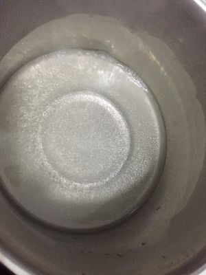 等焦糖基本变深色后,果断离火,轻晃几下,这时候余温会使焦糖颜色变更深,不要再加热了,煮过头就会苦。