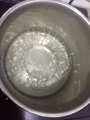 找一个小奶锅,放入60g白砂糖和70g凉水,我看到有人说用热水煮焦糖,我都试过,感觉没什么区别,就是热水用的时间稍微短些,千万不要用勺子搅拌,等到锅里冒泡泡,上焦糖色时,左右晃动奶锅,上色均匀
