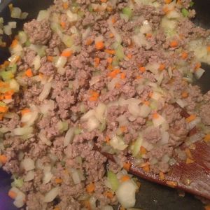 牛肉搅碎或剁碎,西芹 胡萝卜 洋葱切成细丁。2瓣蒜头压成蒜泥。