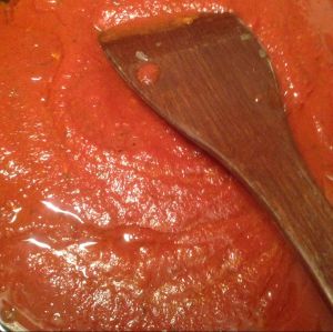 等油温温时,加入西红柿酱翻炒,直至上面出现小泡