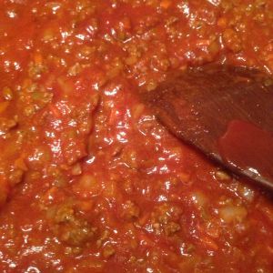加入肉糜炒到变色后,加入刚才炒好的番茄,和牛奶(我放了5调羹的量),这里也可以放适量红酒,如果放了红酒,牛奶可以酌情减少,不然收汁速度慢,但我手边没有,就没有加,炒到收汁,调味出锅。我个人喜欢较干的肉酱。