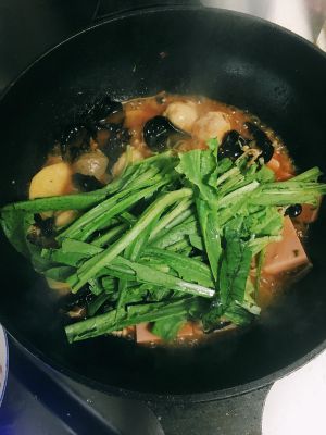 炒出麻辣的味道然后配菜入锅,我的配菜比较多