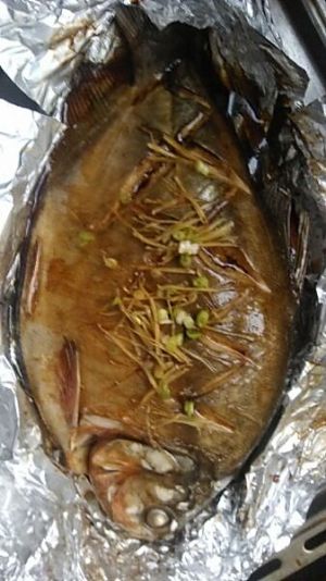 用锡箔纸将鱼和所有调料包起来。这次180度烤了15分钟烤老了
