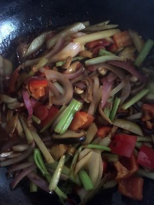 加入豆瓣炒香,加入适量砂糖,加入少量水,熬出香味后,先将土豆,菇类,胡萝卜等难熟的先煮,然后加洋葱,芹菜,红椒,让蔬菜入味 切记不要煮太熟