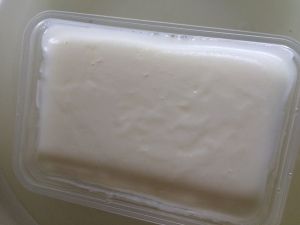 将奶液倒在一个方形容器里,等冷却后放入冰箱。