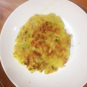 煎锅放油,加热,然后把土豆洋葱混合蛋液倒入煎锅里面(大概厚度是1厘米左右。)等待一面煎熟之后翻面继续煎。