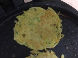 用勺子将土豆泥压成小饼状,再放入锅中煎,两面都变成金黄色即可。
