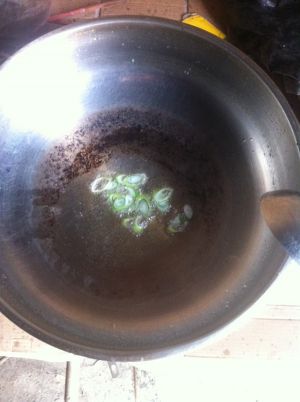 倒入少许食用油,油开之后倒入葱花,翻炒片刻