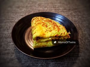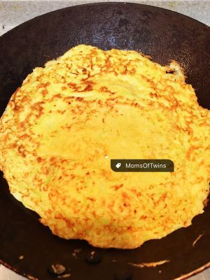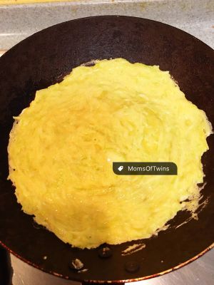 吃的时候可以放一点美极鲜,如果能吃蒜的人就把蒜切末让入美极鲜中,把汁洒在餅上即可。还可以在摊的时候放点香肠末,这样孩子会更兴奋的。