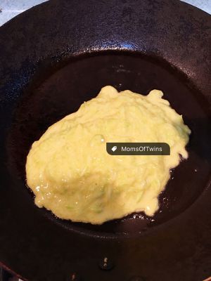 少量油,把面糊放入锅中,量视锅大小基本大的汤勺(30ML)我就一勺半,想摊的薄点就一勺