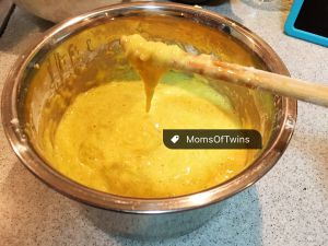 加入面粉,用筷子提起面糊,面糊不会滴答,而是成柱状保持不动即可,千万别提起来像水一样滴答,那样不会成型的