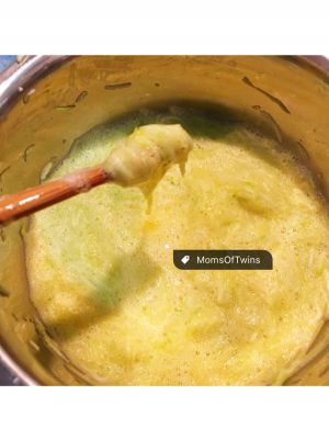 倒入120g面粉,搅匀。如果觉得太粘稠,可以适当加水,至图中状态即可,太稠或太稀都可能影响口感。