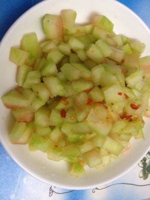 忘了拍照片,西瓜皮切好丁后的用盐抓一下腌制十分钟,然后洗干净滤干水