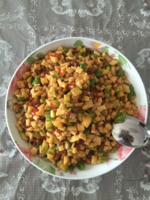 2克的食盐,一勺陈醋,翻炒后出锅即可