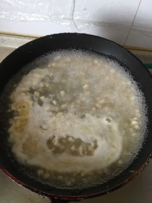 锅内倒少量油预热后根据自己的喜好放入酱,我个人喜欢吃甜就放了甜面酱,不用太多,一勺就够了,把酱炒香后放进切好的葱片继续至葱香