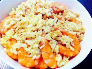 蒜做成蒜末放入碗中,然后加入油,油量刚好没过蒜末,然后加入少于的盐,微波炉1分钟-1分半; 大碗或者深盘一个,先将沥好水的粉丝垫底,然后摆好虾,再将处理过的蒜油淋在虾上,再淋点儿蒸鱼豉油(2勺)