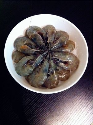 洗干净虾,取虾线,用料酒和生抽腌制一会。