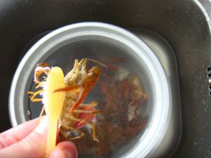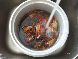 小龙虾养在清水中半小时,看见龙虾爬行的水浑了就反复换清水