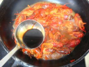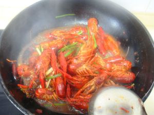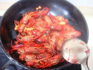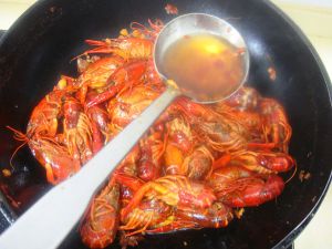 热锅热油倒入所有调料炒香,后加入小龙虾爆炒