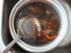 翻炒片刻加入水(最好是刚才煮虾的水)盖上锅盖焖煮5分钟,让龙虾入味。然后就可以起锅盛出
