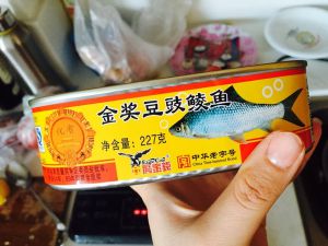 备好食材。小白菜去根,泡水洗净,控干水份备用;打开豆豉鱼罐头(马口铁很锋利,注意别划破手)