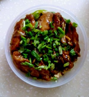 放点葱和芝麻做装饰,再将锅中的煮剩下的糖浆浇上,就完成啦!还不错的样子吧!~\(≧▽≦)/~
