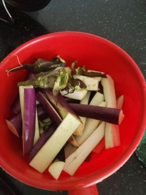 茄子捞出后,锅里留少许油,加入葱姜蒜炸出香味,倒入豆瓣酱炒一下,加点蒸鱼豉油和少许水,开了之后把青椒和美人椒放入烧2分钟,茄子倒入就可以出锅了