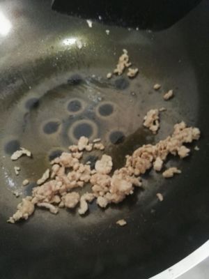 猪肉1两切成肉末。生抽、料酒,淀粉少许腌一下。少许油热后翻炒。