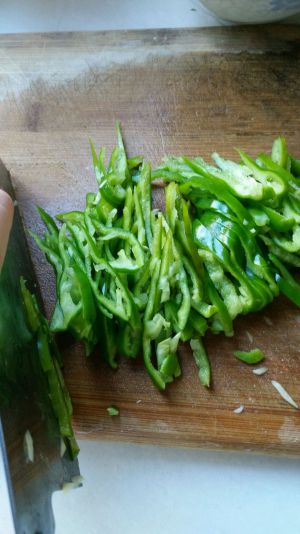 土豆去皮洗净切丝。粗细要均匀。青椒切丝。葱切末。