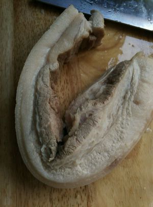 五花肉冷水下锅煮沸.去掉血沫.冲洗干净……
