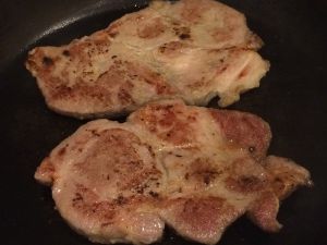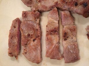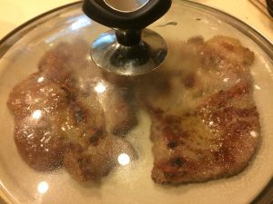 OK, 所有猪扒, 鸡扒, 牛扒的关键之关键:放盘子里,上面扣一个隆起的盖子, 让它saturate15-20分钟
