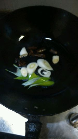 锅里加少量油加入葱大料,煸香