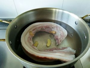 沸水中滚几遍捞出。马上用冷水冲肉。这样做出来的肉不会柴也不会过烂