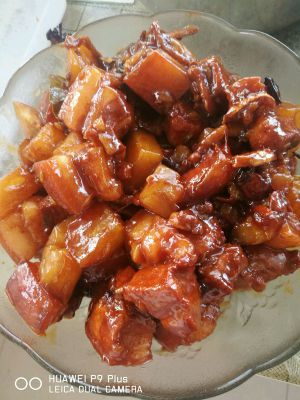 汤汁收干后,拣出八角和桂皮,再倒入水淀粉勾芡一下,快速翻炒至汤汁浓稠后,就可以关火装盘美美的享用了。