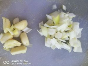 备料,葱姜蒜,将切好的五花肉切块用料酒腌制十五分钟(去腥味),十五分钟后上锅烧开水后放入五花肉,肉变色后捞出待用