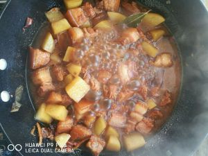 二十分钟后放入备好的土豆块,继续小火炖二十分钟(不放土豆直接小火炖三十分钟)即可