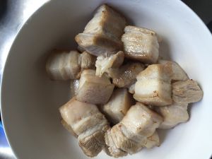 像这种扎扎实实的硬菜,烹饪的越不讲究做出来味道反而越好。我用了500克五花肉,煮出来其实也就一小盘。五花肉根据个人爱好切大小块,但大小一定要均匀。切好备用。