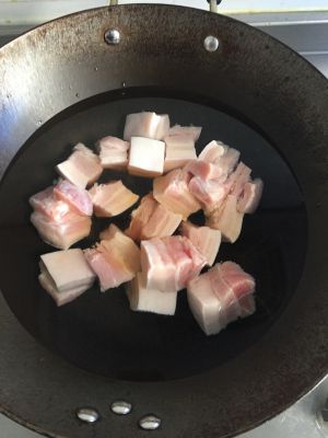 冷锅热油放入五花肉煸炒