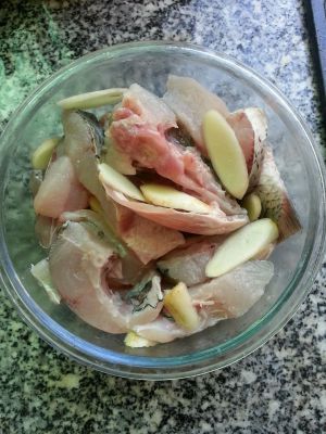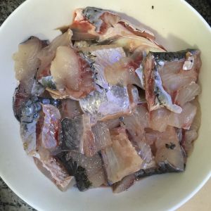 草鱼让卖鱼的切小段,回家清洗干净用淀粉和料酒,姜片腌20分钟。