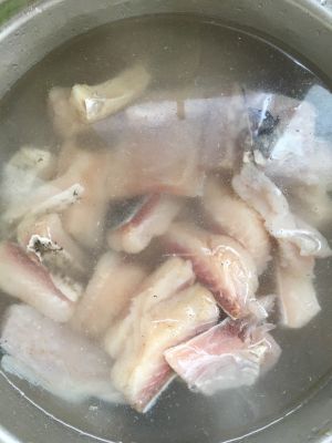 第四步:放入鱼头和鱼骨,开锅后再放入鱼片。