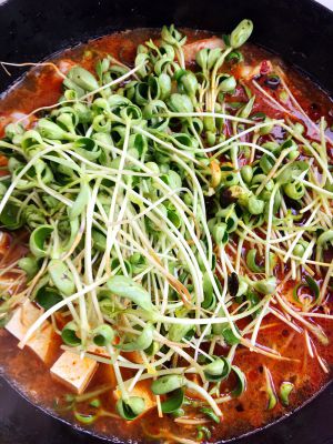 煮沸大约3分钟,打开锅盖,香辣诱人的美食呈现在眼前,口水都流下来啦!经典的重庆味道被我搬到了大北方,爽!