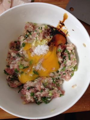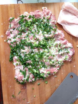 第一步:把五花肉剁成肉糜,添加香葱,姜末,蒜末搅拌均匀